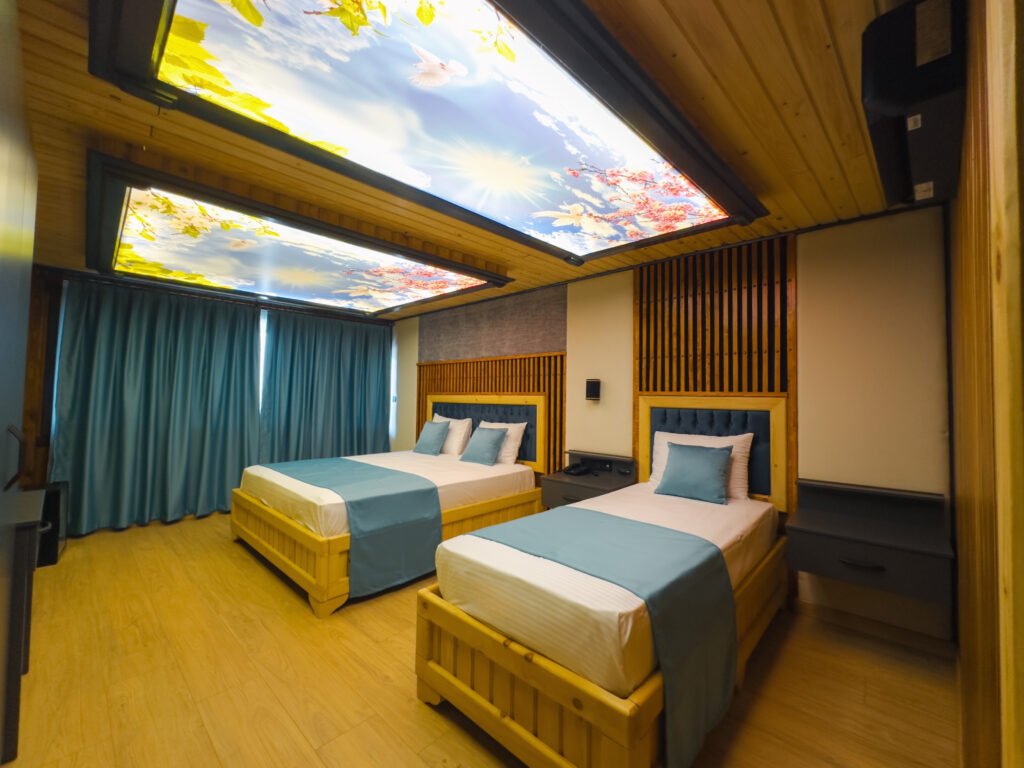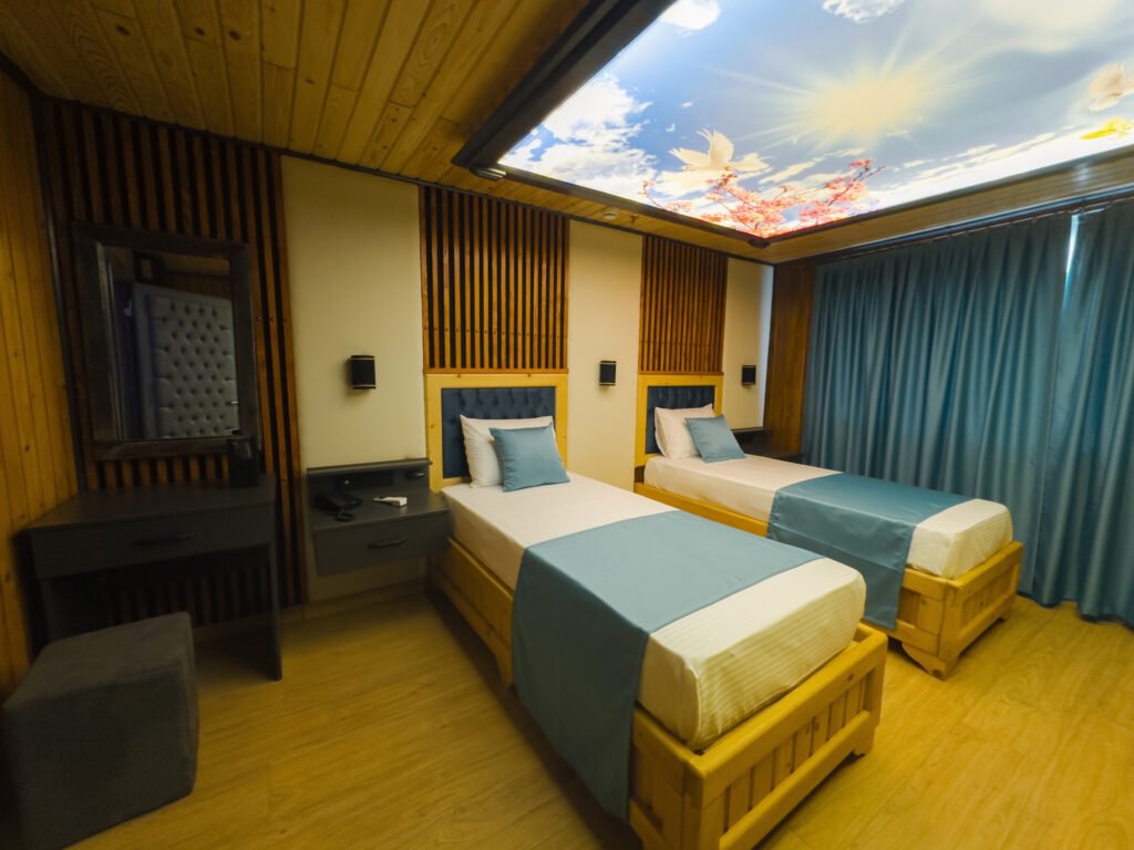 Ayrı yataklı ve ferah tasarımıyla Twin Odamız, arkadaşlar veya kardeşler için idealdir. Doğal ahşap detaylar ve sıcak bir atmosferde rahat bir konaklama sizi bekliyor.